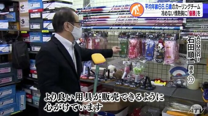 青森市栄町にある創業73年のイシダスポーツ。県協会設立時からカーリングに携わってきた石田さんの店です。
