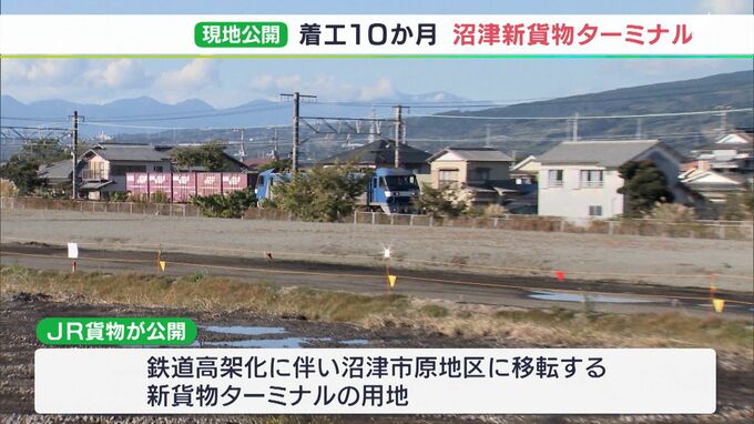 JR沼津駅(静岡県沼津市)周辺の鉄道高架事業の前提となる新貨物ターミナルの着工から10か月。JR貨物は整備が進む現地の様子を報道陣に公開しました。<JR貨物の現場説明>「調整池ののり面がありますが、この緑の…
