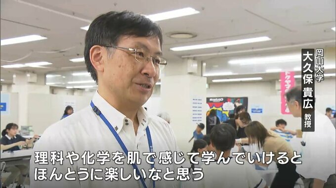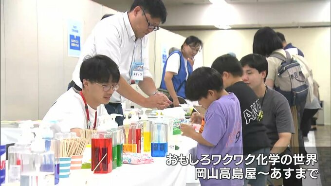 子どもたちに、実験を通して化学に興味を持ってもらおうという体験イベントが岡山市の百貨店で開かれています。