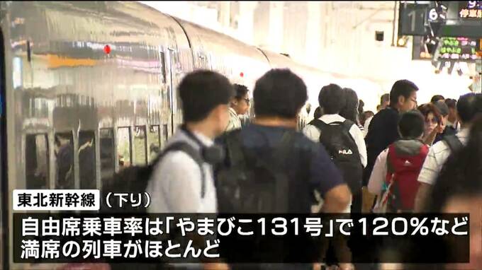 お盆休みを、ふるさとや行楽地で過ごす人たちの帰省ラッシュは9日がピークで東北新幹線は午前中から下り列車を中心に混雑しています。今年のお盆休みは9日から最大9連休でJR仙台駅の新幹線ホームでは朝から大きな…