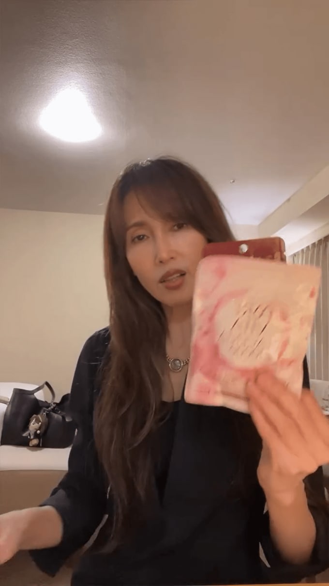 工藤さんは「ビフィズス菌、乳酸菌は必ず」と念を押しつつ、 “ざくろジュース” について回想。いつも携行しているざくろジュースを忘れたことに気づいたものの、 “その話を聞いていたかのように、空港でこのざくろジュースをいただき” と、そのパックを見せています。