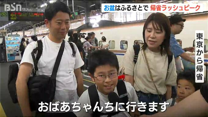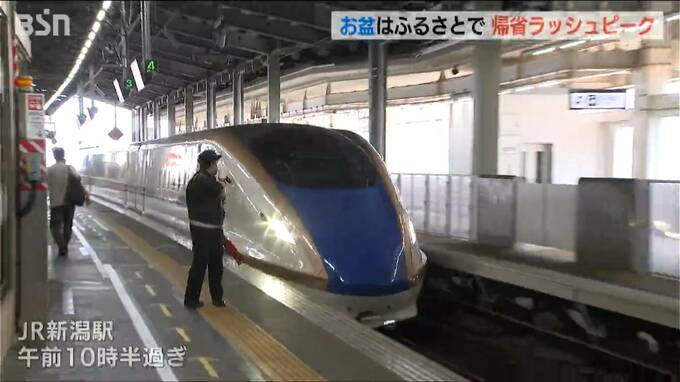 JR新潟駅では9日午前、大きな荷物を持った家族連れが続々とホームに降り立ちました。帰省客らが利用する新幹線の下りは9日がピーク。