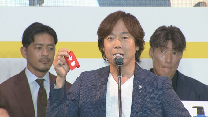 佐藤さんは、しっかりとした足取りで登場するとトロフィーを受け取り、“昔の子どもたち、こんにちはー!”と、「ひろみちおにいさん」らしい挨拶。“去年の今頃は、まだリハビリ病院で入院をしていました。今こうして立っているんですけれど、見た目ではわからないので常にヘルプマークを「何かあった時にはみなさんに助けていただきたいな」と思いながら持ち歩いています”と、自身の持つヘルプマークを紹介しました。