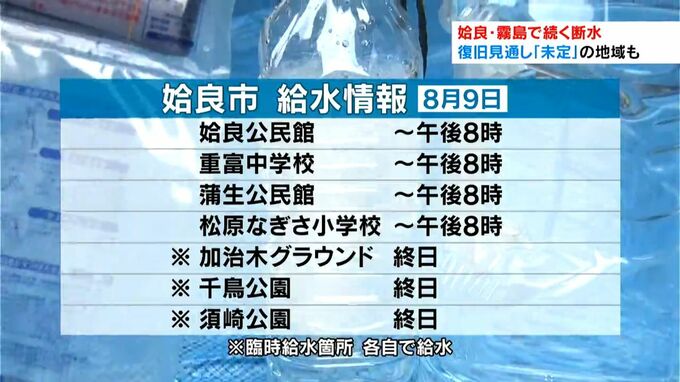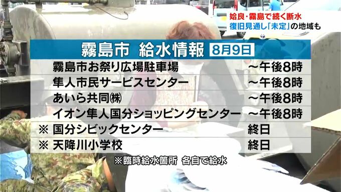 8日猛烈な雨を観測した霧島市と姶良市では、水源につながる配管が破損するなどして、およそ3万7000戸が断水しています。