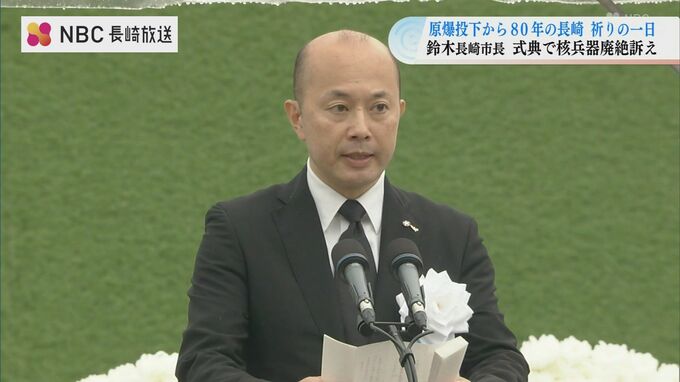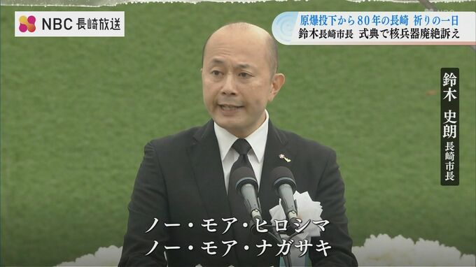 長崎市の鈴木史朗市長は平和宣言で世界の指導者へ核兵器廃絶の実現に向けた具体的道筋を示すよう訴えました。