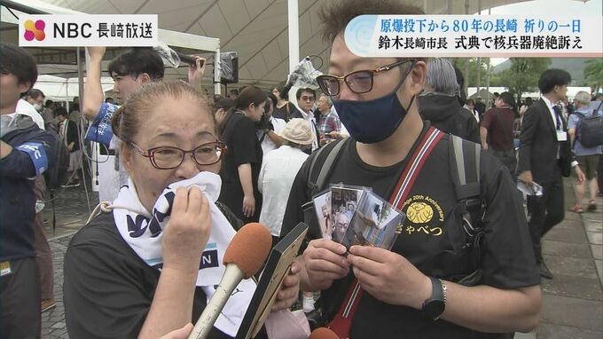 熊本から参列の男性(11歳の時、銭座町で被爆した母が、去年10月、90歳で死去)「母はもうそんなに多くは原爆のことは語らなかったんですよ。一番母が願ってるのは、戦争のない世界。核の終わり。私たちの時代だけでいいと。ということを書き残していました。私が受け継いで孫たちにもきちんとこの大切な気持ちを伝えていきたいと思います」