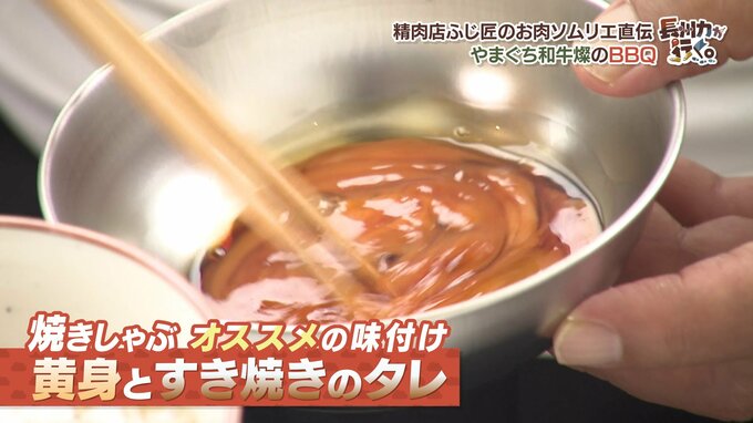 焼きしゃぶは、「黄身とすき焼きのタレ」を絡めて、ごはんにのっけていただきます!