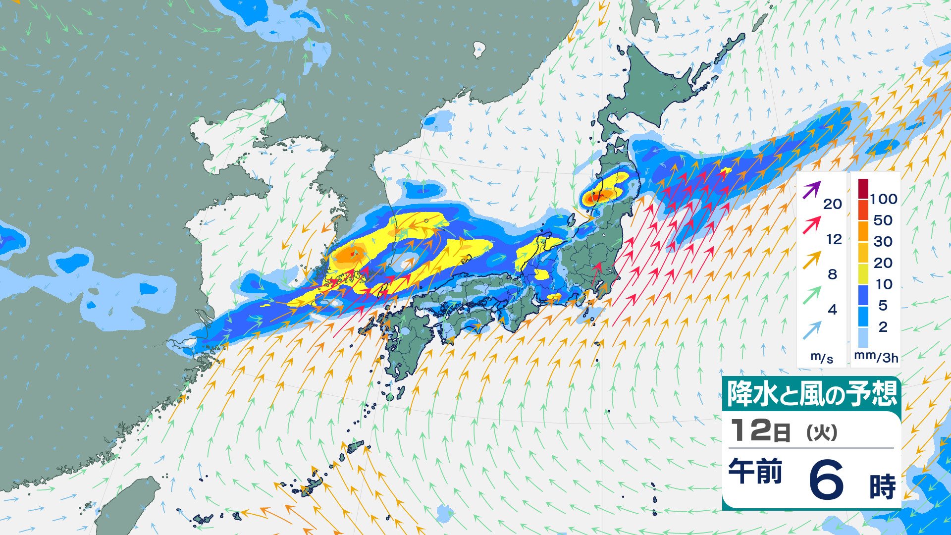 【大雨情報】中国地方は、12日にかけて大雨となる見込み 土砂災害、浸水害、河川の増水に十分注意 『警報級の大雨』の可能性も【雨風シミュレーション】 チューリップテレビ 2025年8月10日(日) 06:58 国内 天気 12日(火)の雨風シミュレーション