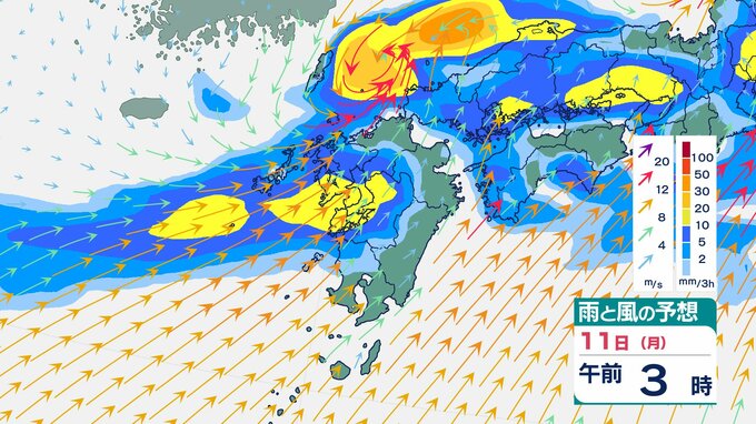 3. 【速報】熊本県・大分県で線状降水帯発生のおそれ 10日夜のはじめ頃から11日朝にかけて 九州北部地方では土砂災害などに厳重警戒【10日~12日にかけて雨風の予想シミュレーション】