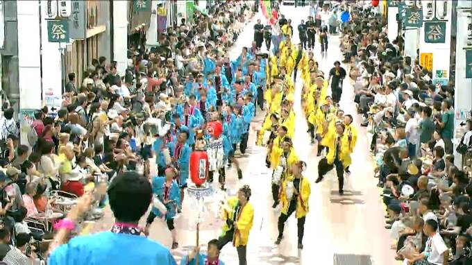 よさこい祭り本番が始まりました。188チームの踊り子たちが、高知市内16か所の競演場・演舞場でエネルギッシュな舞を披露しています。午前11時半過ぎの帯屋町演舞場の様子です。午前11時、帯屋町筋チームをスター…