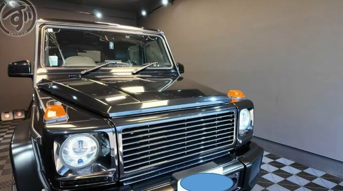 更に、カスタマイズについて、「結構この車もこだわってるんで、いくつかご紹介します」と説明。まず、グリルについて「まずグリル、こちらベンツマークがありません」「これは、ブラバスグリル、昔のゲレンデのコンプリートカーについていたグリルを探しに探して見つけました」と語り、希少なパーツを入手した経緯を報告。