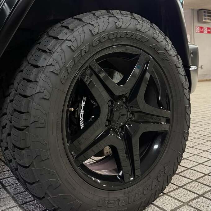 細部へのこだわりは続き、「サイドステップ、こちらも、純正のものではないものに取り替えて、マフラーはブラックに塗装」し、「ブレーキキャリパーも普段は赤いキャリパーなんですが、それも塗装」したと述べました。さらに「ホイールもブラックに塗装」し、「タイヤはいわゆるブロックタイヤ、オープンカントリーに変更」したと、足回りの改造についても詳しく説明。