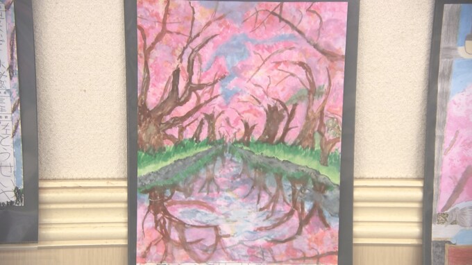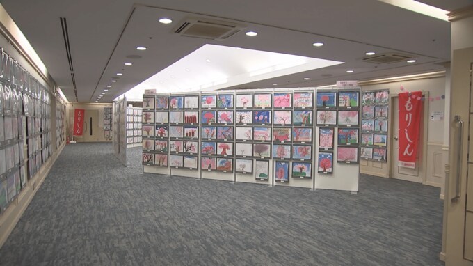 「桜の札所・絵画コンクール」は県内の児童に自然を大切にする心や郷土を愛する心を育んでもらおうと、盛岡信用金庫が2013年から開催しているものです。9日に盛岡市菜園のカワトクで始まった展示会には、県内の桜の名所や水辺の桜、夜桜など県内30校・2団体の児童の作品1496点全てが展示されています。