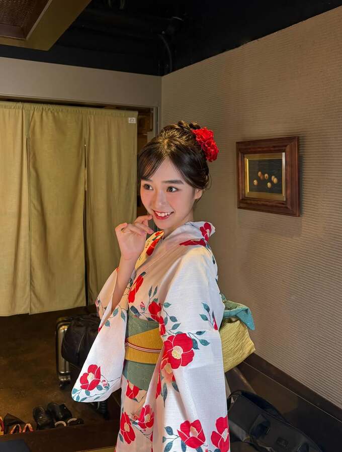 藤岡舞衣さんは「『 #仙台七夕まつり 』から、沢山の方の心が詰まった吹き流しと街の人達の温かさに包まれて.. ♡」と、椿柄の浴衣姿でポーズをとる自身の写真8枚を投稿。