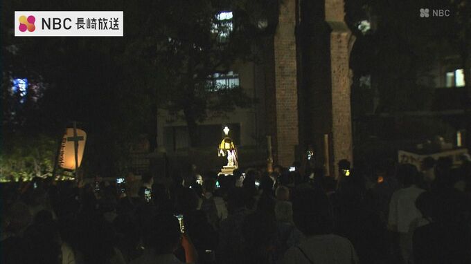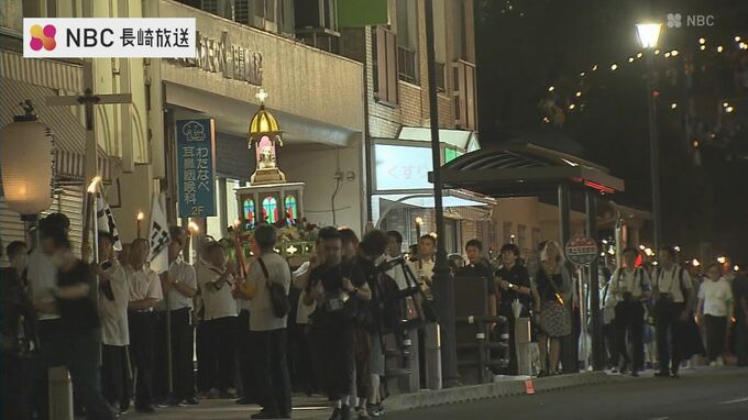 原爆で多くの信徒が犠牲となった長崎市の浦上天主堂では8月9日の夜、平和を祈るたいまつ行列が行われました。