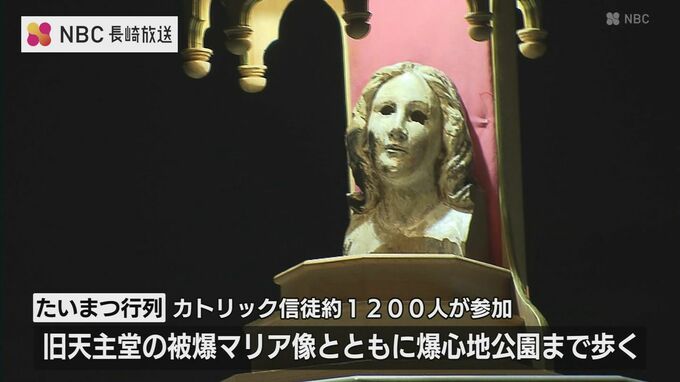 昨夜はカトリック信徒らが平和を願う祈りの火をたいまつに灯し、旧天主堂から見つかった被爆マリア像とともに爆心地公園を目指しました。