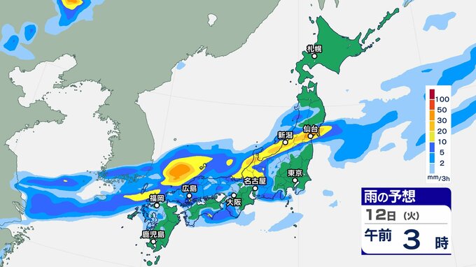 【大雨情報】12日朝までに24時間で120mmの降雨予想…12日にかけて土砂災害に厳重警戒を 北陸地方【雨風シミュレーション】 チューリップテレビ 2025年8月11日(月) 06:18 国内 天気 12日(火)の雨風シミュレーション