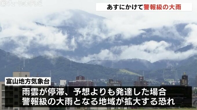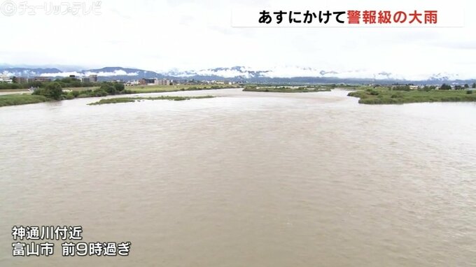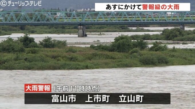 9日から断続的に雨が降っている県内。現在、富山市、上市町、立山町には大雨警報が発表されています。