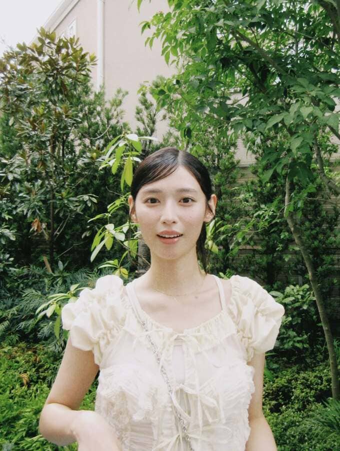 さらに、透明な傘を差して微笑む白石さんの写真や、クリーム色のフリル付きブラウスを着て庭園の前でカメラに微笑む姿も投稿されており、27歳の誕生日を迎えた喜びに満ちた表情が印象的です。