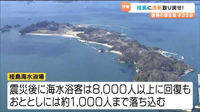 塩釜市の離島・桂島の海水浴場は東日本大震災の津波で被害を受けましたが、2014年に再開。その後、海水浴客は8000人以上に回復しましたが、コロナ禍の影響もあり2023年にはおよそ1000人にまで落ち込みました。
