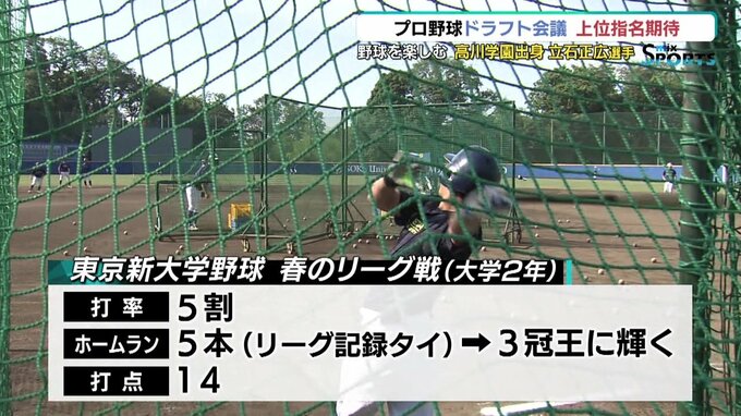 今年秋のプロ野球ドラフト会議で上位指名が期待されているという立石選手。