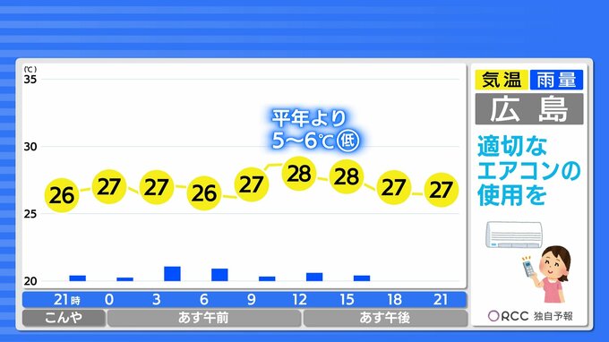あすの日中の気温は、きょうよりも2℃~3℃ほど高くなる予想ですが、あすも30℃を下回る地点が多いでしょう。ジメジメムシムシした体感になりそうです。今週木曜日以降は夏の高気圧の勢力が再び強まり、晴れて厳しい暑さが復活する見込みです。