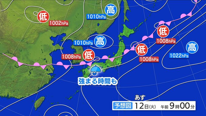 12日(火) 雨のピークは過ぎるが断続的に雨 雨脚が強まる時間も 土砂災害に警戒