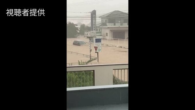 午前9時半ごろの上天草市松島町の映像です。道路が冠水し、水の流れが速くなっています。