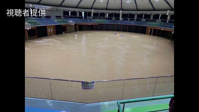 この地域にある体育館、通称「アロマ」のメインアリーナは浸水していました。