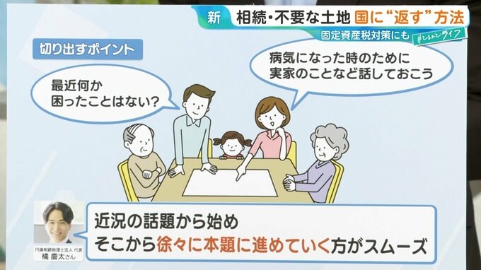 「最近何か困ったことはない?」とか、「病気になったときのために実家のことなど話しておこう」とか、近況の話題から始めて、徐々に本題に進めていくのがスムーズです。