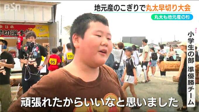 「暑くて、ちょっとのこぎりを引いていると肩も痛くなるし、腰も痛くなるし、いろいろと痛いけど、なんか頑張れたからいいなと思いました」