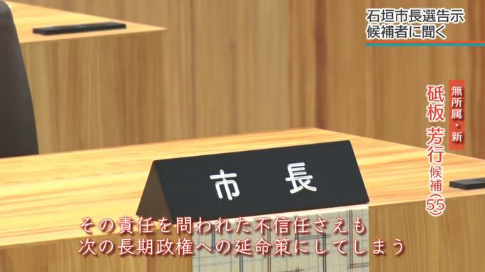 ただ、選挙戦となったきっかけがこれまでとは大きく異なります。ことしの6月定例会で公文書改ざんが明らかとなり、石垣市政では史上初となる市長の不信任案が可決され、中山さんは失職しました。
