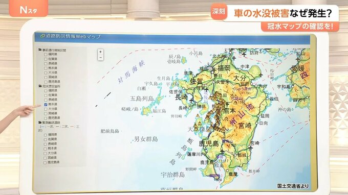 車が水没被害に遭う前に“冠水マップ”の確認を!