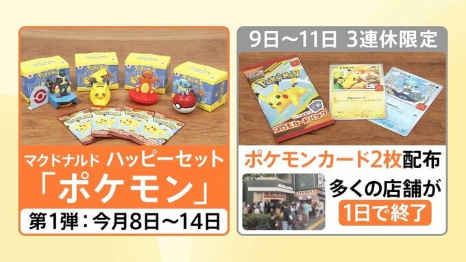 マクドナルドが9日から3日間限定で、「ポケモンカード」付きのハッピーセットを販売しました。人気のカードを巡って、転売や商品を食べずに捨てるなどの行為が各地で相次ぎました。