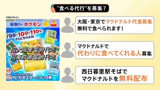 中国SNSでは、“食べる代行”を募集するという呼びかけもありました。