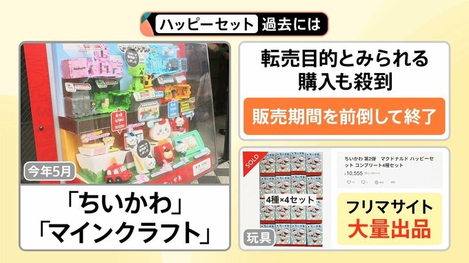 2025年の5月には、「ちいかわ」「マインクラフト」とのコラボレーションがありました。転売目的とみられる購入も殺到し、販売期間を前倒して終了することが相次ぎました。そして、フリマサイトに大量出品されました。