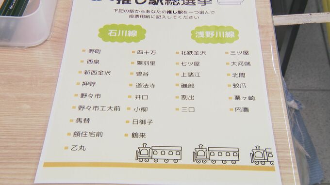 7月から行われていて、北陸鉄道石川線と浅野川線の29の停車駅から一番好きな駅に投票し、推し駅ナンバーワンを決めます。