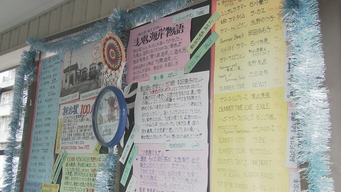 推しポイントは他にもあり、開業100年を迎えた浅野川線の歴史を伝える資料や、往年の夏のヒット曲をまとめたポップも飾られています。
