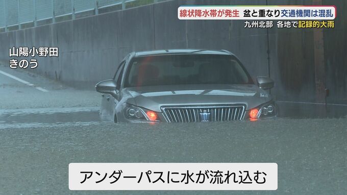 山陽小野田市では線路をくぐるアンダーパスに水が流れ込み、車が取り残されました。