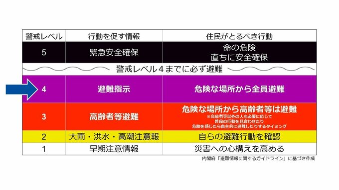 避難指示(警戒レベル4)が発令されているのは以下の自治体です。
