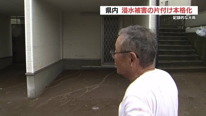 アパートが浸水「泥だしをしている。足が滑らないようにしないと、どうしようもない。明日から天気が良くなるから今日のうちにある程度しておかないと」