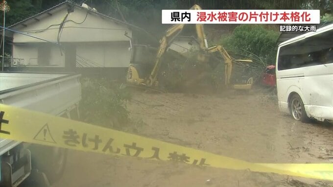 記録的な大雨に襲われた熊本県内では、浸水被害を受けた人たちが自宅や店などの片付けを進めています。