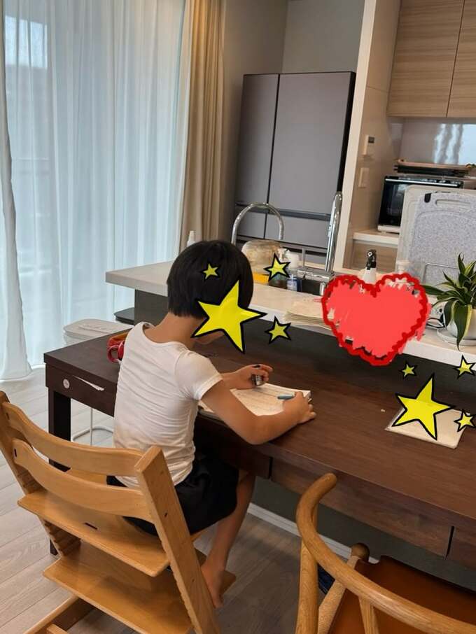 投稿の最後には「さぁ 今週はみんなで宿題頑張るぞ〜」と、子どもたちと共に夏休みの宿題に取り組む決意を述べていました。