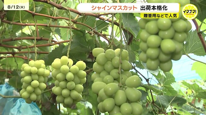 広島県福山市で高級ブドウ「シャインマスカット」の出荷が本格化しています。