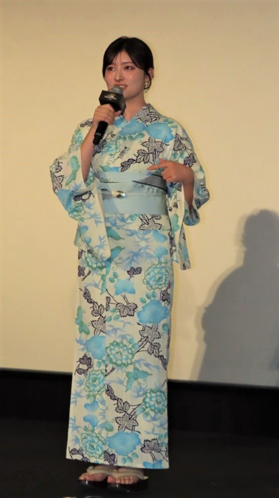 登壇者は夏感満載の浴衣姿でイベントに登場。主人公ゾーラ・ベネットの吹き替え声優を担当した松本さんは‟(恐竜の)ケツァルコアトルスそっくりということで、浴衣が何着かあったけど「絶対これでしょ」ということで選ばせていただきました。色味もぴったりです”と浴衣を気に入っている様子。