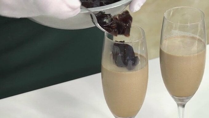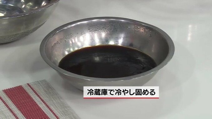 4.冷えた液をグラスや器に入れ冷やし固める。