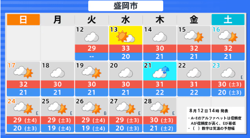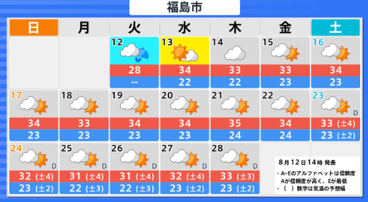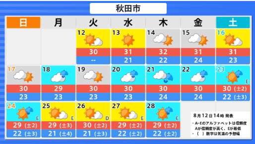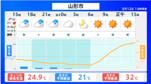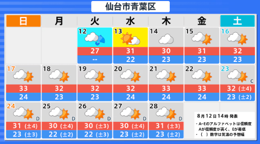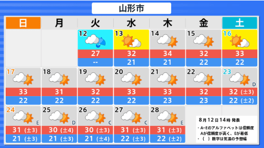 【2週間気温予報】北・東・西日本の向こう2週間の気温は高くかなり高い日も多い見込み 熱中症や農作物の管理などに注意 今後の東北・全国の天気を画像で 気象庁 テレビユー山形 2025年8月12日(火) 16:08 国内 ■今後の東北の天気