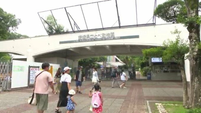 とべ動物園では夏休み中の子どもたちの姿が多く見られました。しかし、12日は雨上がりのあとでかなり蒸し暑く動物も人もぐったり…。訪れた人たちは冷たい物を食べて涼んでいました。(大阪から帰省中の孫と来園…