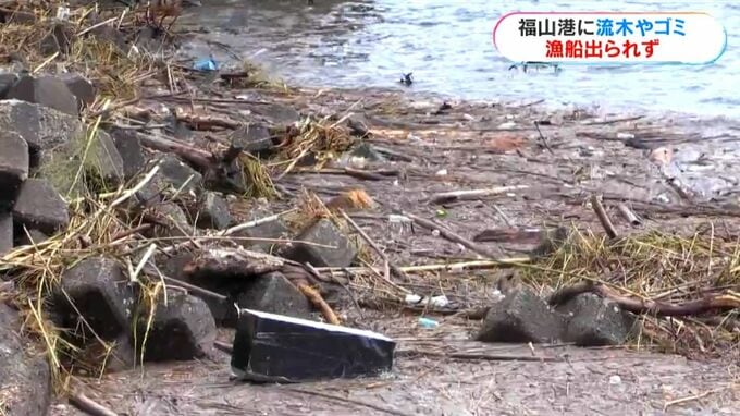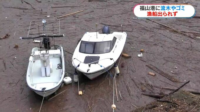 県漁協・福山町支所によりますと、福山港はアジやタイを一本釣りする小型船などが停泊し、流木の影響で港から出られないということです。ブリの養殖いけすに被害は確認されていません。