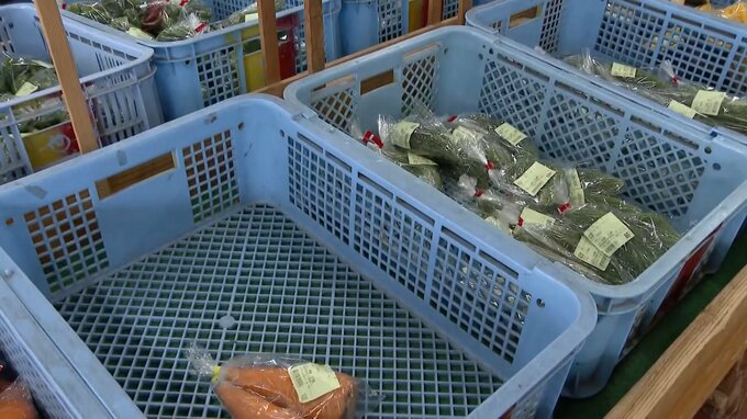 きょうも、きゅうりや小松菜オクラなどが品切れ状態で、そのほかの野菜も半分程度の出荷にとどまっていました。